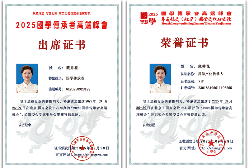 藏秀花,女,1966年出生于黑龙江尚志市,常年定居于天津。她身兼数职,既是民俗文化传承人、高级堪舆师,也是易学文化传承推动力人物与国学文化传承者,更在2025国学传承者高峰论坛中担任大会副主席,以多重身份在民俗与易学领域发光发热。