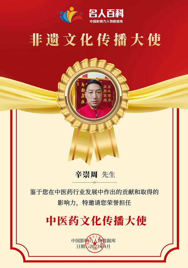 辛崇周,1969年出生,山东莒县人,中医康复理疗师三合康复穴位祛病原始疗法创始人,1998年前往新加坡求学跟随道家、佛家老师学习医术二十余年。2020年返回中国,在家乡开设了三合康复理疗店,得到了大家的一致认可。2022年,他的“三合康复学位祛病原始疗法”通过了国家版权局的审核认证,成为了一项受保护的专利技术,他本人亦获得了由国家原卫生部副部长孙隆椿部长亲笔题词的“弘扬中医国粹”牌匾,2023年担任中国中医药信息学会特新分会特邀专家,颁发牌匾和聘书。