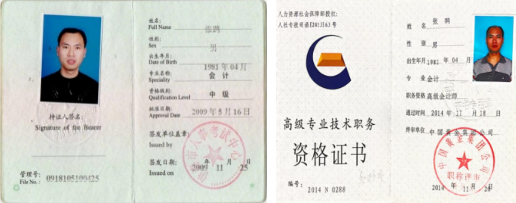 中级、高级会计师证: