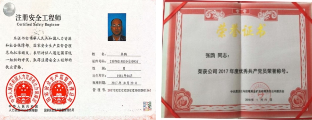 注册安全工程师证、优秀共产党员称号证: