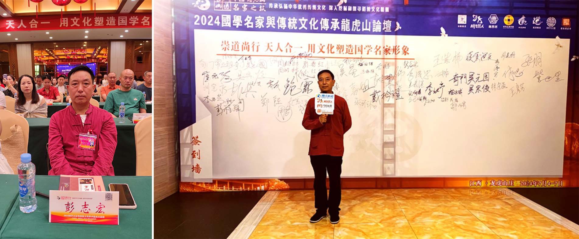 在数十年从事和主持各类传统文化活动的过程中,彭志宏凭借高尚的品德与 深厚的学识,赢得了广泛认可与赞誉。他的足迹遍布多地,从北京、上海、广东、 福建到台湾、内蒙、海南、江西、湖北、安徽、重庆、四川、贵州等地,每一处都留下了他服务信众与福主的身影。无论是严谨的堪舆布局、庄重的道教法事, 还是韵味悠长的文昌戏表演,他都以虔诚之心对待,力求传递传统文化的精髓与 力量。