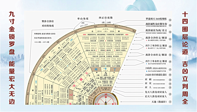 另外,张益老师精益求精,不断融合更多的易学知识和术术体系,总结设计进最新系列的罗盘版面之内,其第二代罗盘产品匠心力作《10寸综合盘面 》,不仅编排了金锁玉关的经文和断语,而且沙水吉凶、厨卫吉凶,用清晰明了的符号和颜色明确标识,让易友们可以看盘面找答案,盘面直读,在盘面就可以快速高效而又精准无误的进行风水吉凶判断。