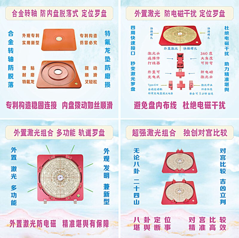 ③ 借助名易堂专利产品--“防电磁干扰外置激光罗盘”,可在罗盘精准定位后,利用天池指南针进行精准定向和堪舆布局;