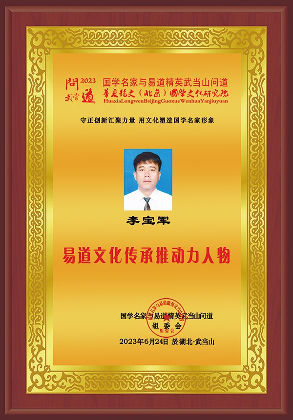 2023年6月25日受邀出席道教名山---武当山举行的“2023国学名家与易道精英武当山问道高端论坛”,授予“易道文化传承名家”荣誉称号;同时,近年来被全国各地多家学术论坛组委会授予“高级堪舆师”、“高级奇门遁甲预测名家”等荣誉称号。